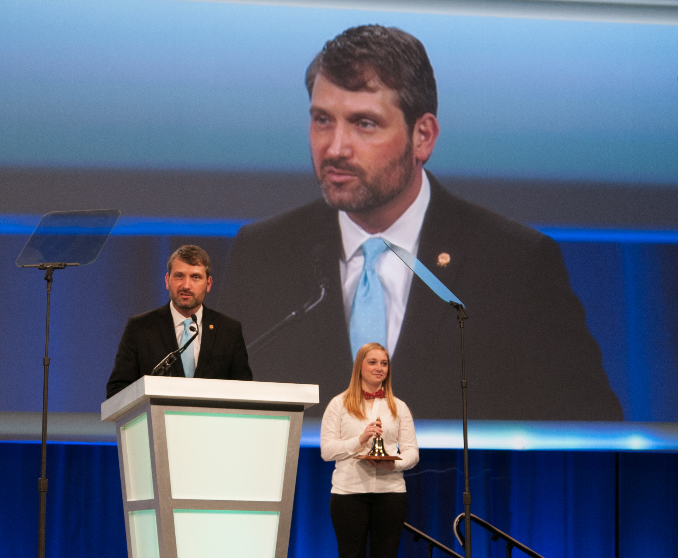 Scott Bowers, Indiana Electric Cooperatives Vice President of Government Relations, accepts the Paul Revere Award at the 2015 NRECA Annual Meeting.