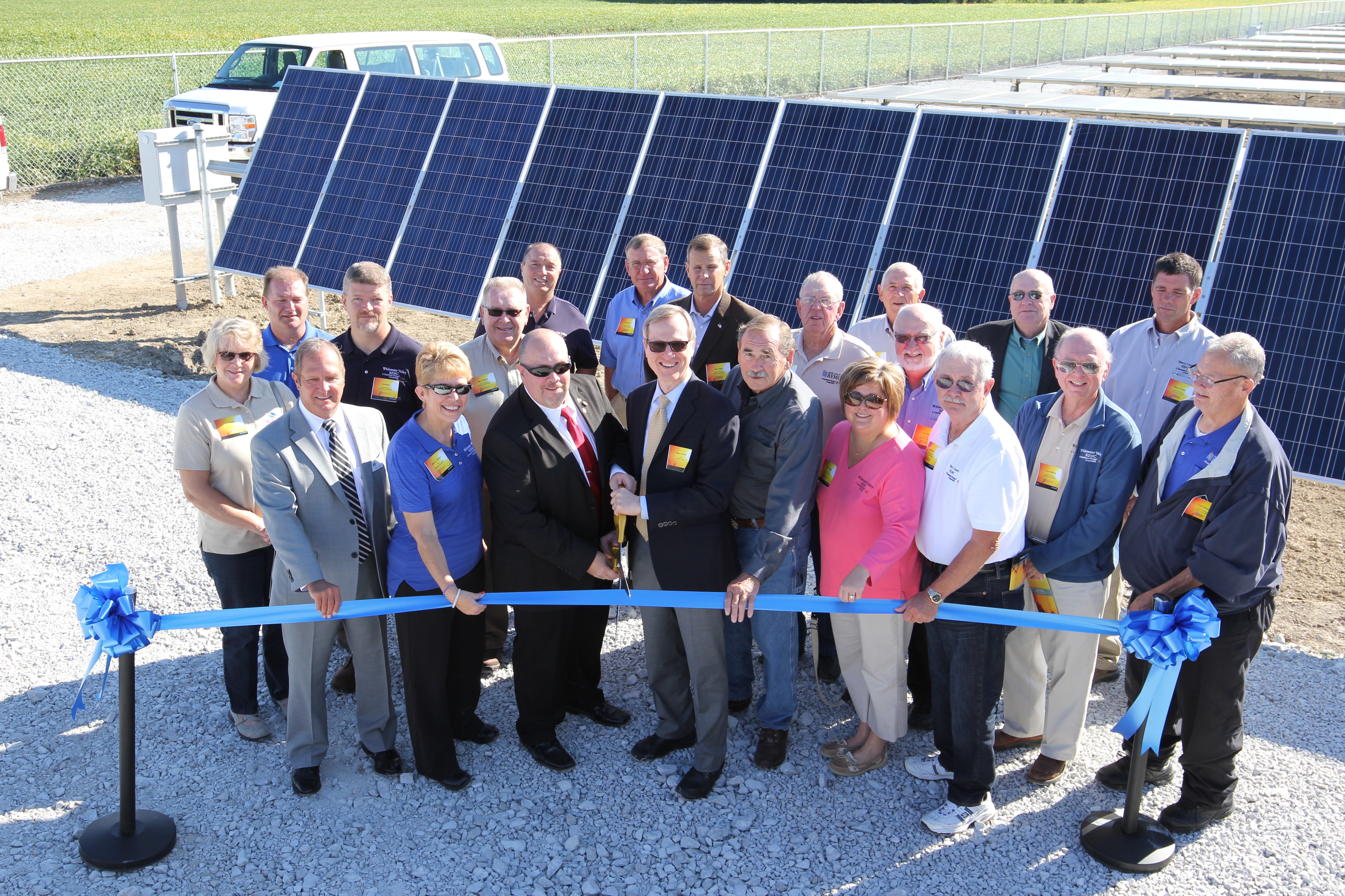 Representatives from Henry County REMC, RushShelby Energy, Whitewater Valley REMC and Hoosier Energy dedicate a new solar array in Henry County Sept. 16, 2015.