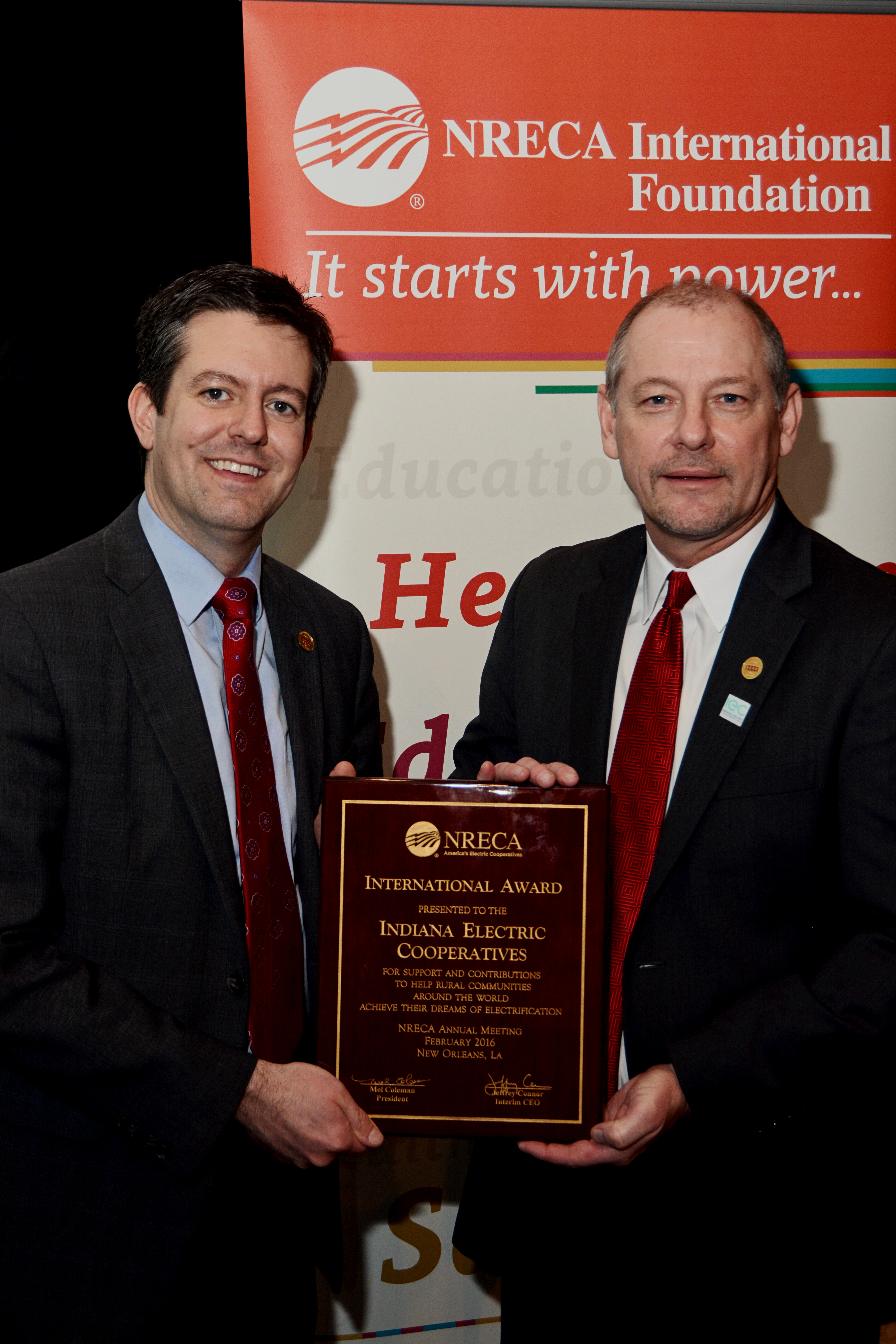 Indiana’s electric cooperatives were recognized Tuesday at the National Rural Electric Cooperative Association (NRECA) annual meeting with the International Award. The award recognizes exceptional dedication