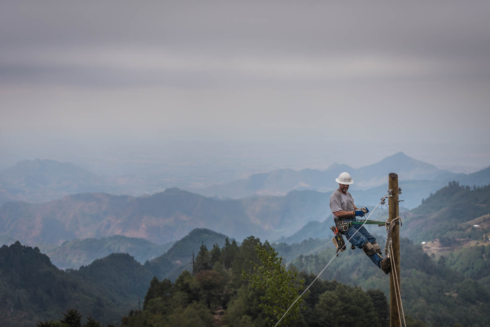 This was the Indiana electric cooperatives’ third trip to Guatemala. In August 2012, 28 Hoosier lineworkers from 17 of Indiana’s electric cooperatives, spent four weeks working across the mountainous terrain to construct more than 20 miles of power lines and bring electricity to three villages. In April 2015, 14 lineworkers battled extreme heat and the rugged land to string 11 miles of wire to connect 76 poles across 2,500 feet of mountains.