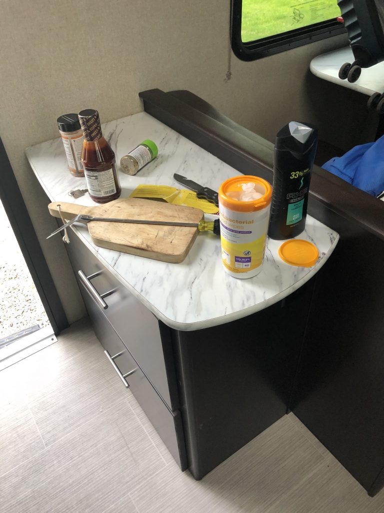 Enter a 24-foot Kodiak travel trailer: Chuck’s home-away-from home on wheels for at least the next month. The plan allows for Chuck to take on the training schedule that requires overnight stays. The rented camper provides him with a safe, consistent place to rest each evening, knowing who’s been in the space the night before.